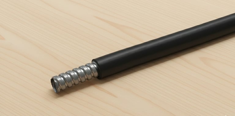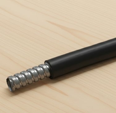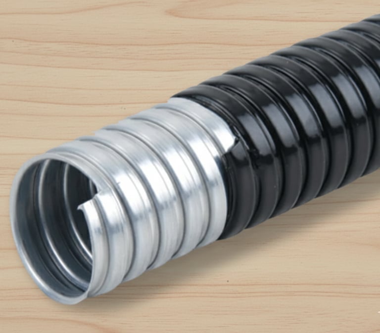 A liquid-tight flexible conduit (LTFC) is a type of flexible electrical conduit designed to protect wiring in environments where moisture, oils, or other liquids are present. It is typically made from an inner core of helically wound, interlocking metal—similar to standard flexible metal conduit—but covered with a durable, waterproof jacket made of PVC or a similar polymer. This outer coating seals the conduit, preventing water and corrosive substances from reaching the wires inside.