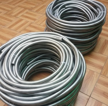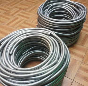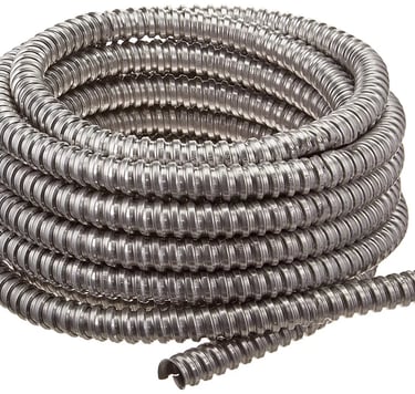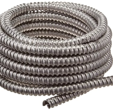 A metallic flexible conduit (MFC) is a type of electrical raceway designed to protect and route conductors while offering a high degree of flexibility compared to rigid conduit systems. Made from helically wound, interlocking metal strips—typically galvanized steel, stainless steel, or aluminum—this conduit can bend easily without the need for special tools or fittings, making it especially useful in environments where rigid conduit would be difficult or impossible to install. Because of its construction, MFC can accommodate movement, vibration, and changes in direction, making it a preferred choice in applications involving machinery, equipment connections, and tight or irregular spaces.