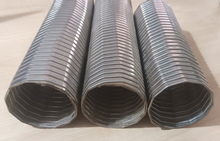 Metallic polygonal hoses are flexible metal hoses constructed from interconnected polygon-shaped segments—often hexagonal or similar geometric profiles—rather than smooth, round corrugations. This polygonal structure allows the hose to bend easily while maintaining high mechanical strength and crush resistance. They are typically made from stainless steel or galvanized steel and can be produced in interlocked or welded designs.